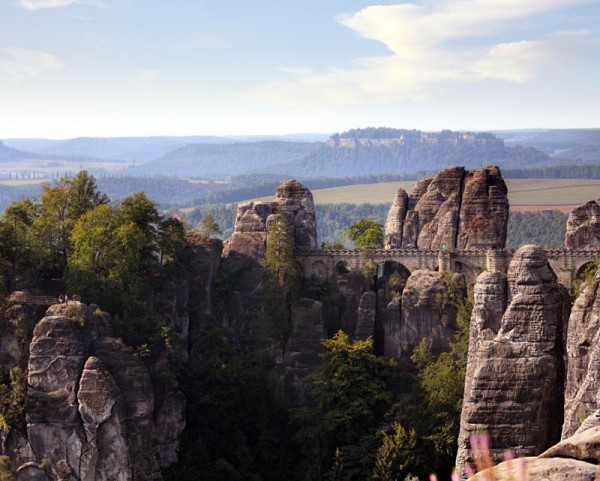 Die wahrscheinlich bekannteste und älteste Touristenattraktion der Sächsischen Schweiz ist die Bastei und deren Ausblick über das Elbtal bis weit in die benachbarte Landschaft der Lausitz, des Erzgebirges und nach Dresden.